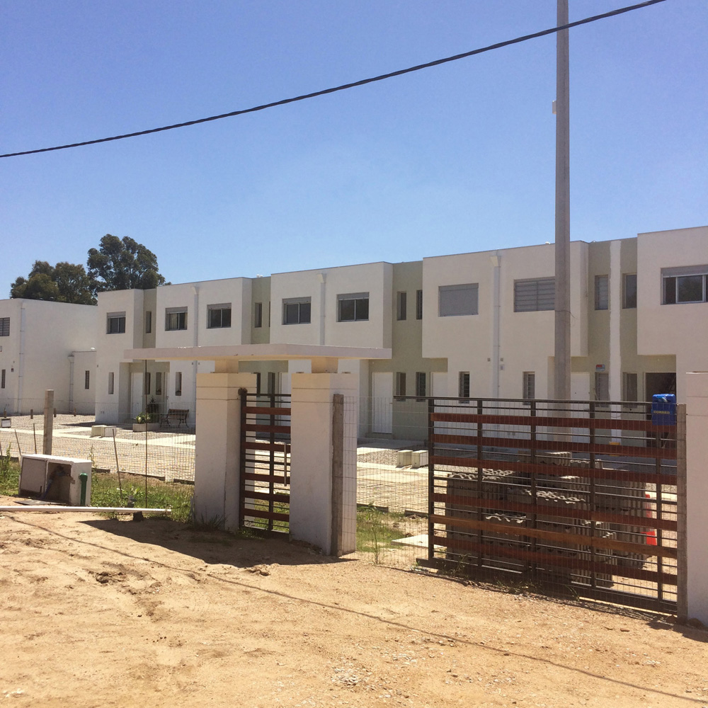 Complex featuring 65 social housing units in ten blocks separated by inner streets. Each unit has a garden and a courtyard. The complex has a multipurpose room with two barbecue areas.