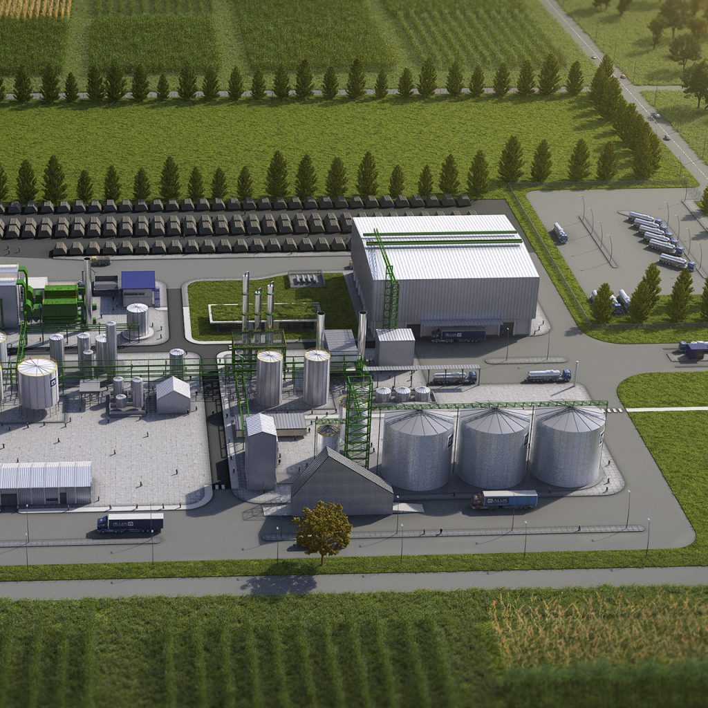 Industrial complex in a 20‑hectare lot. It features independent buildings that complement the different facilities. It has buildings with laboratories, administration building, a grain-inspection building, technical and maintenance premises, chemical factory, and animal feed loading system (DWGS). The project also included landscaping work.