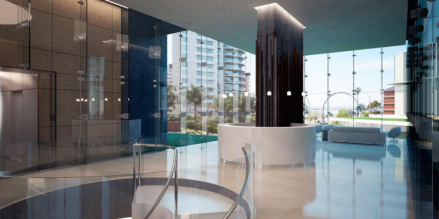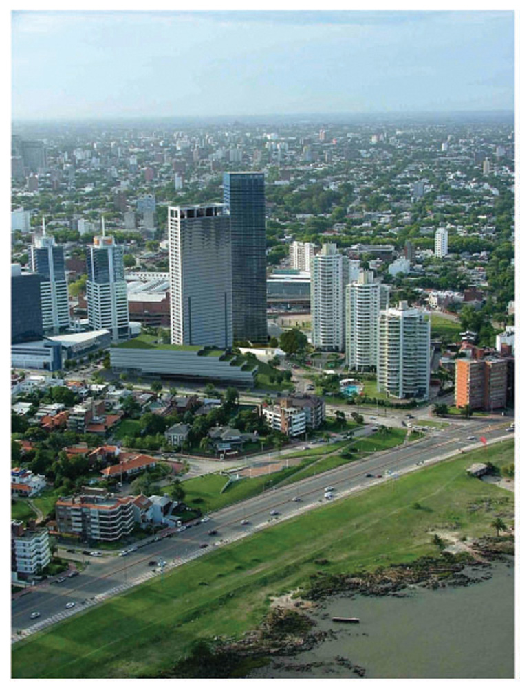 A 105‑meter‑high residential tower part of the World Trade Center Montevideo building complex. It features three basement levels (two parking levels and one with amenities), a ground floor, three technical floors, 26 floors with 194 housing units and an exclusive Sky Club on the top floor.