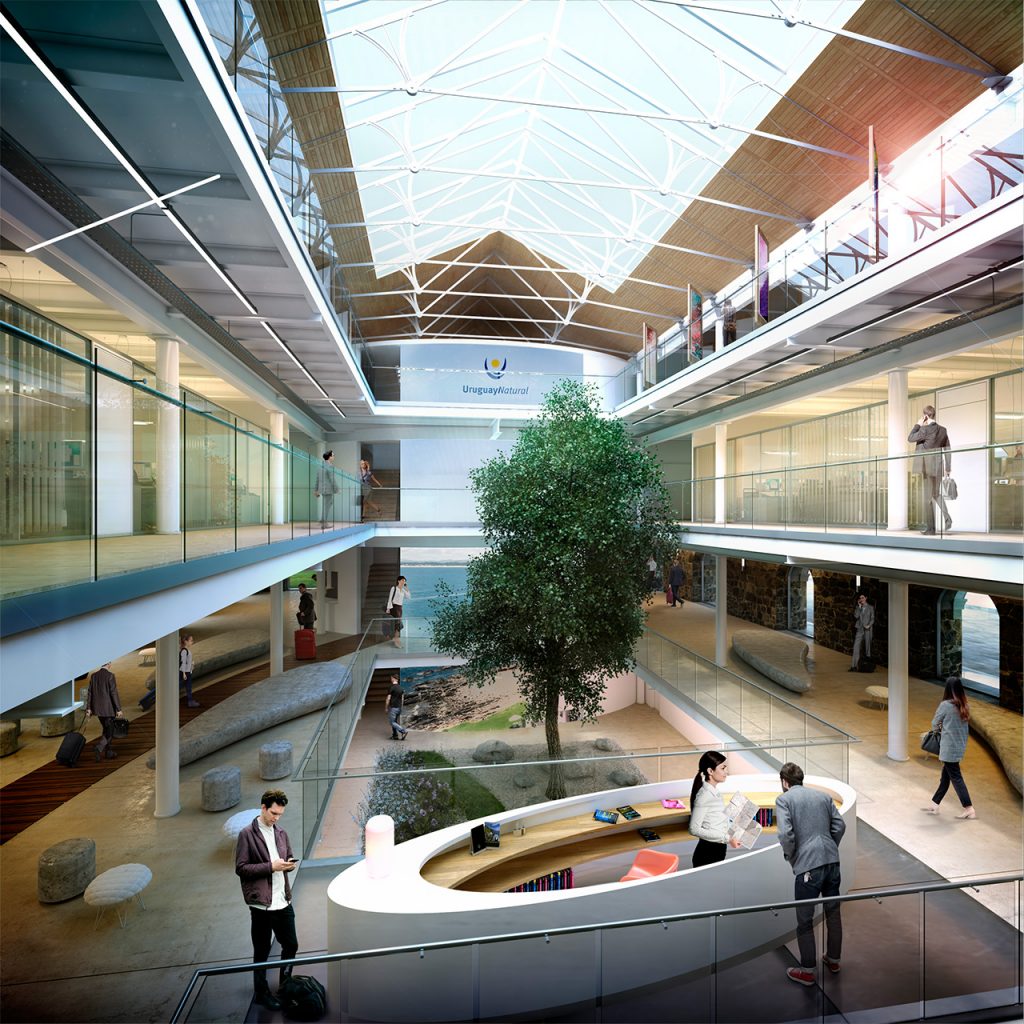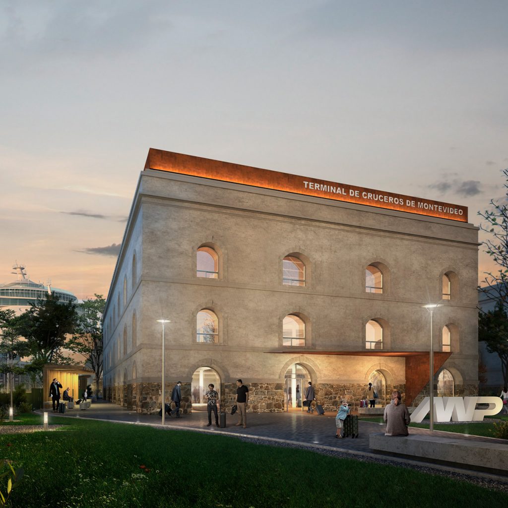 New cruise terminal at the port of Montevideo. The former Santos warehouse is remodeled. It has a large passenger reception area, customs control, VIP lounge, restaurant, museum, multipurpose room and offices.
