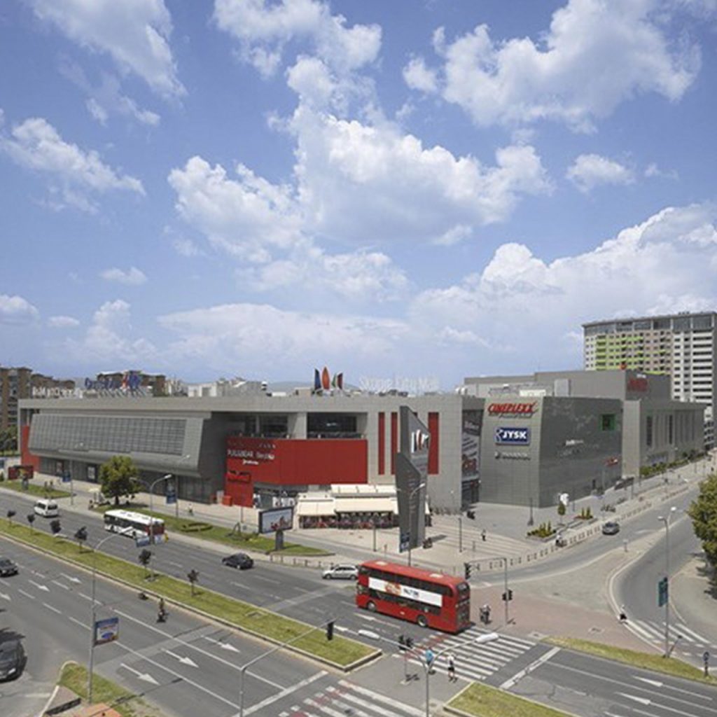 Shopping center on one of the most important boulevards in Skopje. It features three levels: one with parking lots and a supermarket and two levels of commercial premises, a food court, coffee shop, terrace, entertainment areas and cinemas.