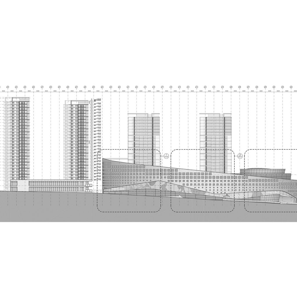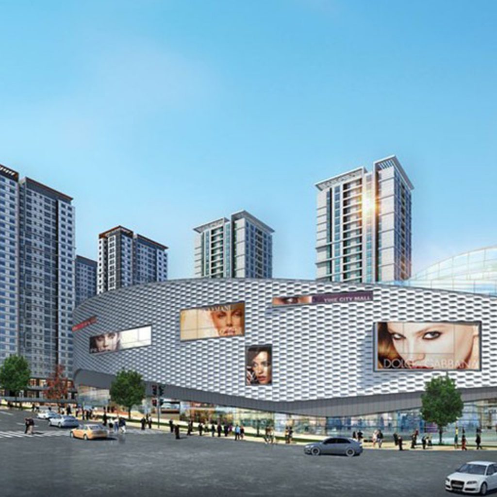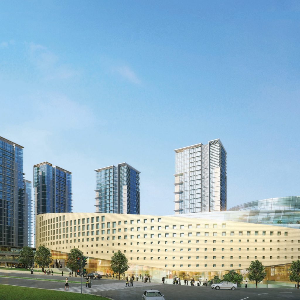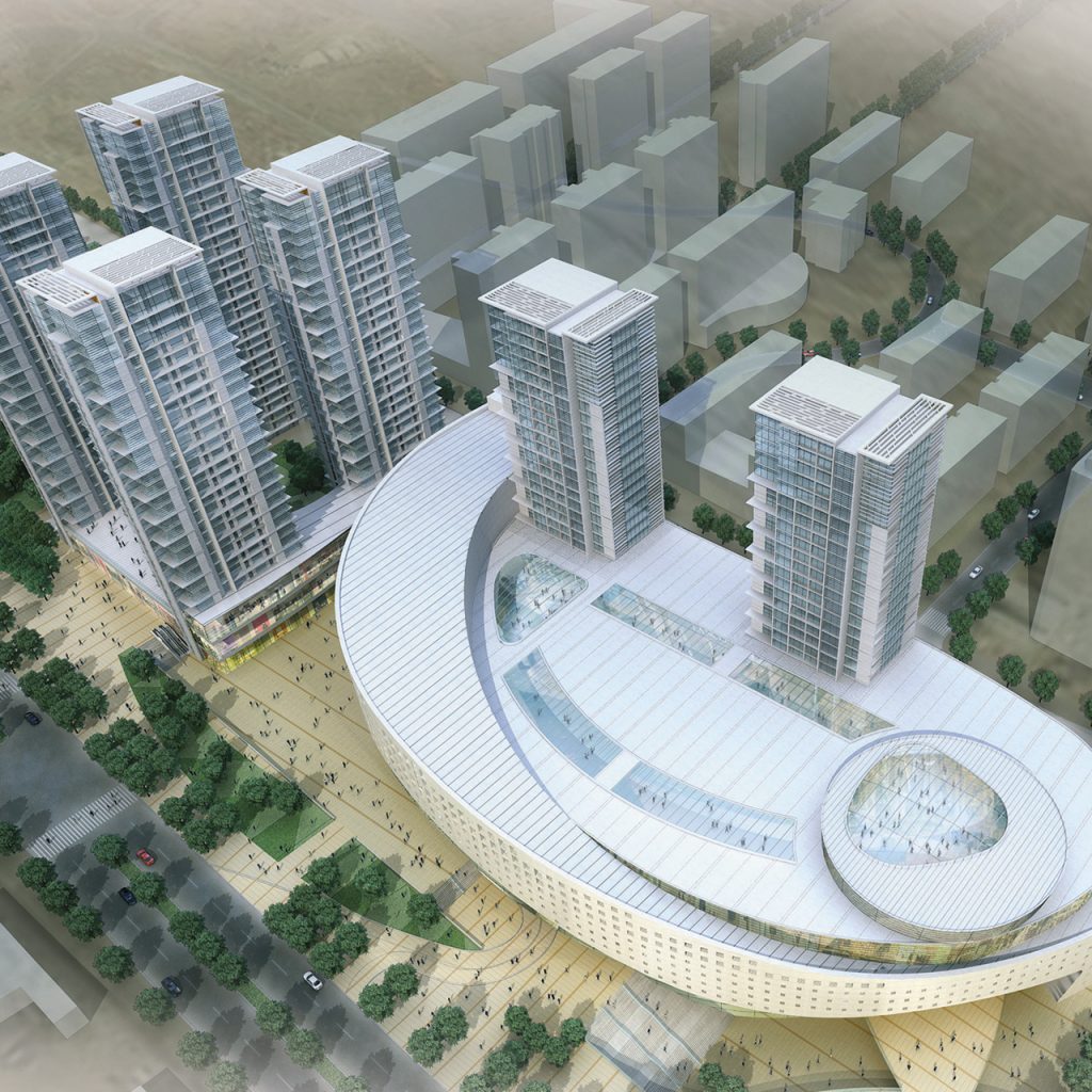 Mixed‑use project featuring a six‑level shopping center, a shopping area connected with the outside area, six apartment towers with 30 levels each and four underground parking lots.