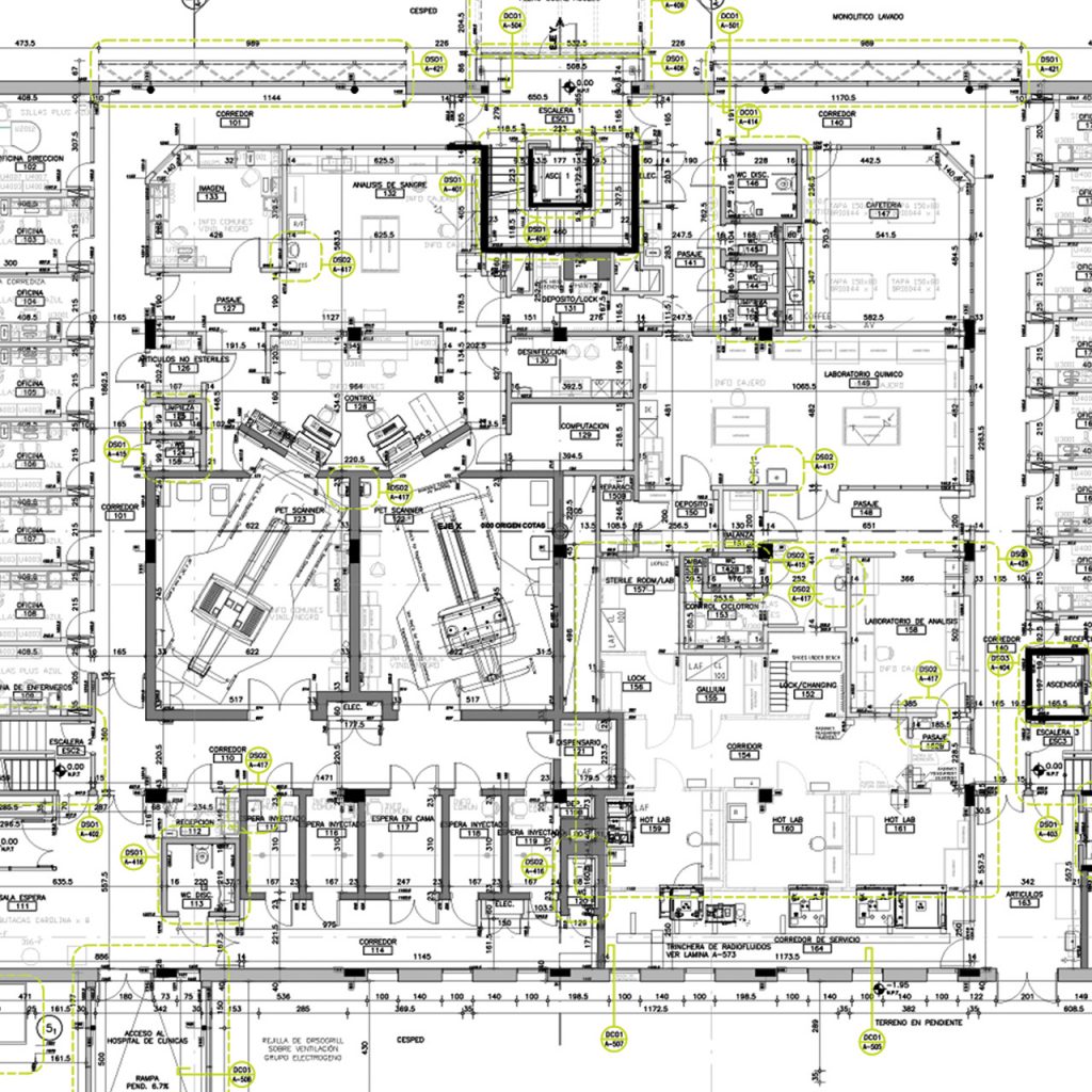 Centro de Imagenología Molecular para el diagnóstico de enfermedades oncológicas, cerebrales y cardiológicas e investigación biomédica. Se desarrolla en tres niveles, uno subterráneo, planta baja y un nivel superior. Cuenta con zonas de examen, oficinas, escáneres pet, cámara del ciclotrón y un área de investigación, entre otros servicios.