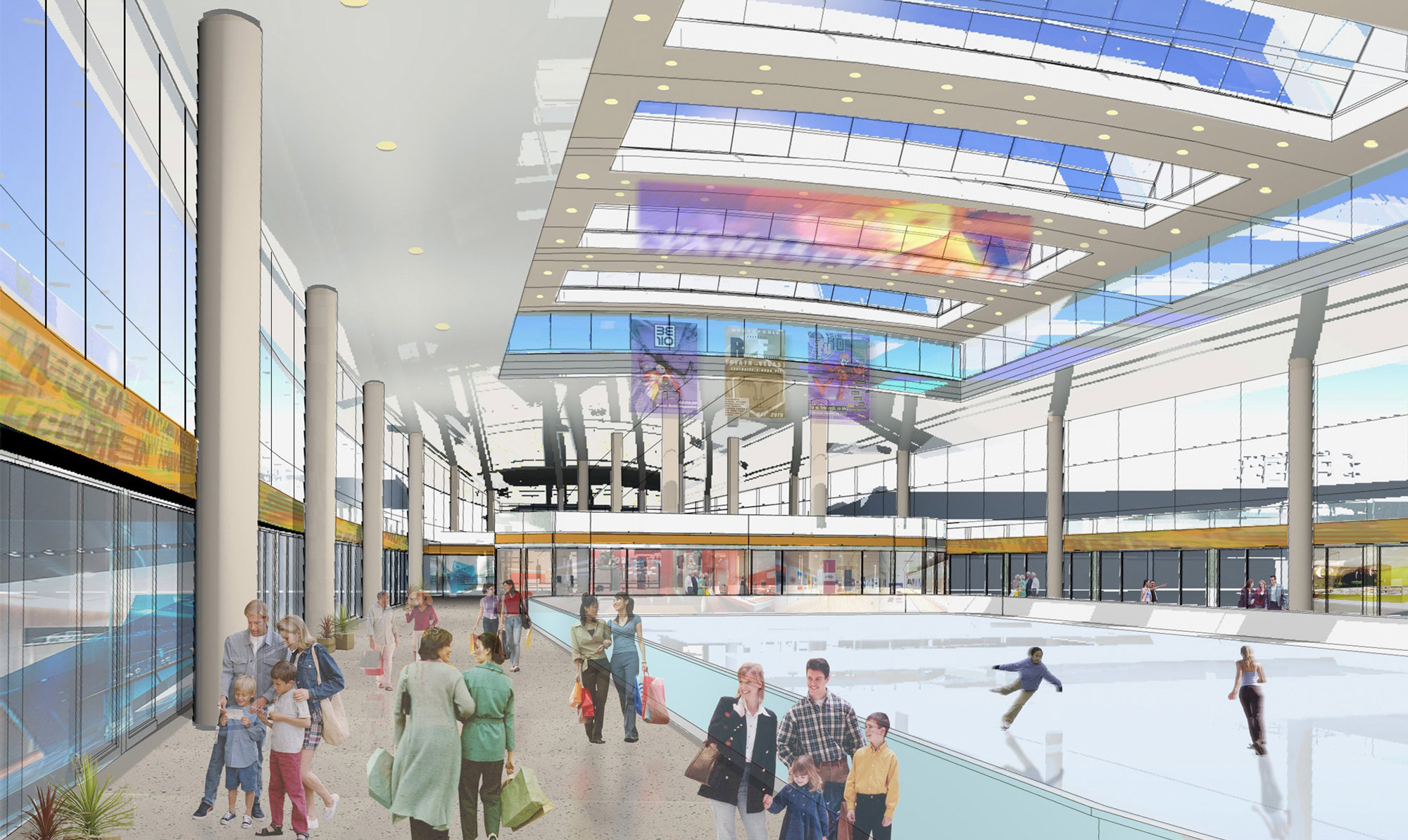 Shopping center en Ivano‑Frankivsk. Cuenta con dos niveles de 25 000 m2 cada uno. En el nivel inferior hay estacionamiento y una gran tienda; en el superior, locales comerciales, plaza de comida, pista de patinaje sobre hielo y bowling.