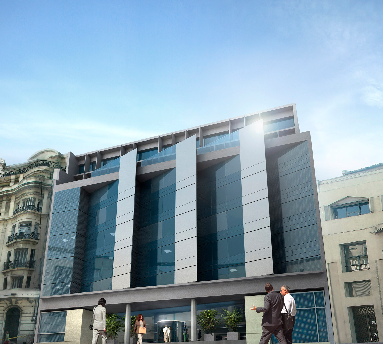 Edificio de oficinas en la Ciudad Vieja de Montevideo. Se desarrolla en dos subsuelos, planta baja en doble altura y ocho niveles de oficinas.