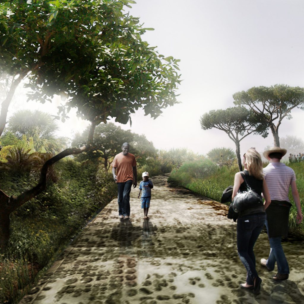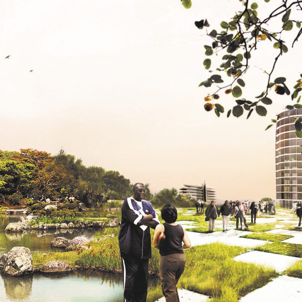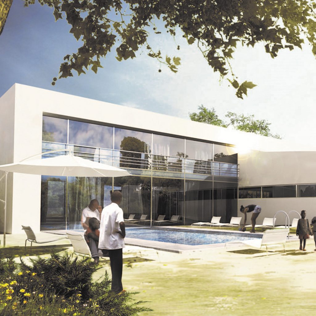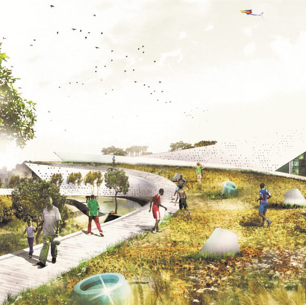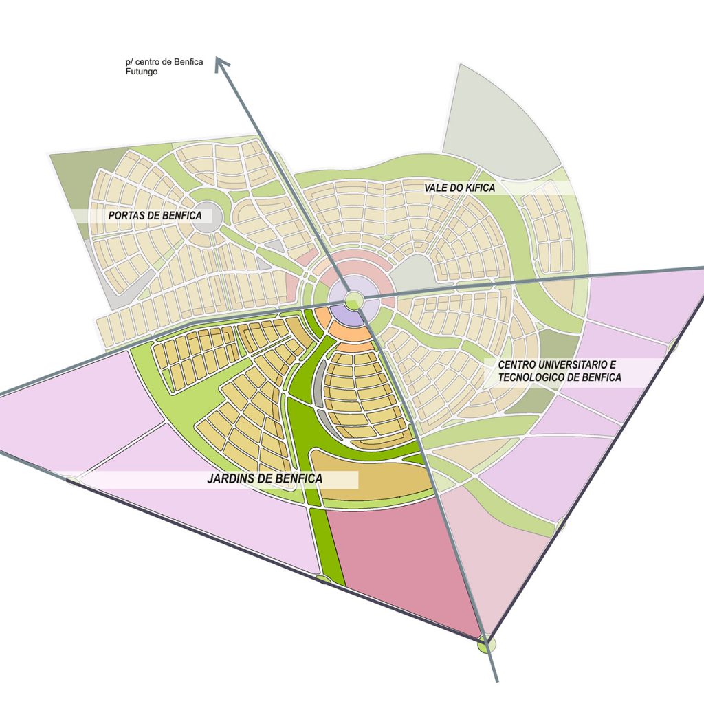 Proyecto que abarca tres escalas diferentes, desde el planeamiento urbano hasta el diseño arquitectónico de los edificios principales y las zonas residenciales. A nivel urbano, se plantea un parque lineal, con una zona residencial de viviendas unifamiliares y edificios multifamiliares, un centro comercial y equipamiento urbano comunitario. Está ubicado a 17 km al sur de Luanda en la frontera de expansión urbana de esta ciudad.