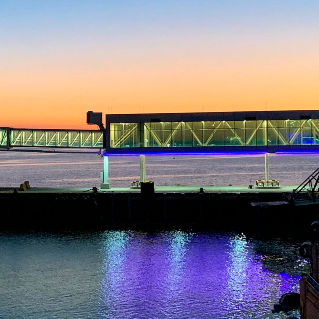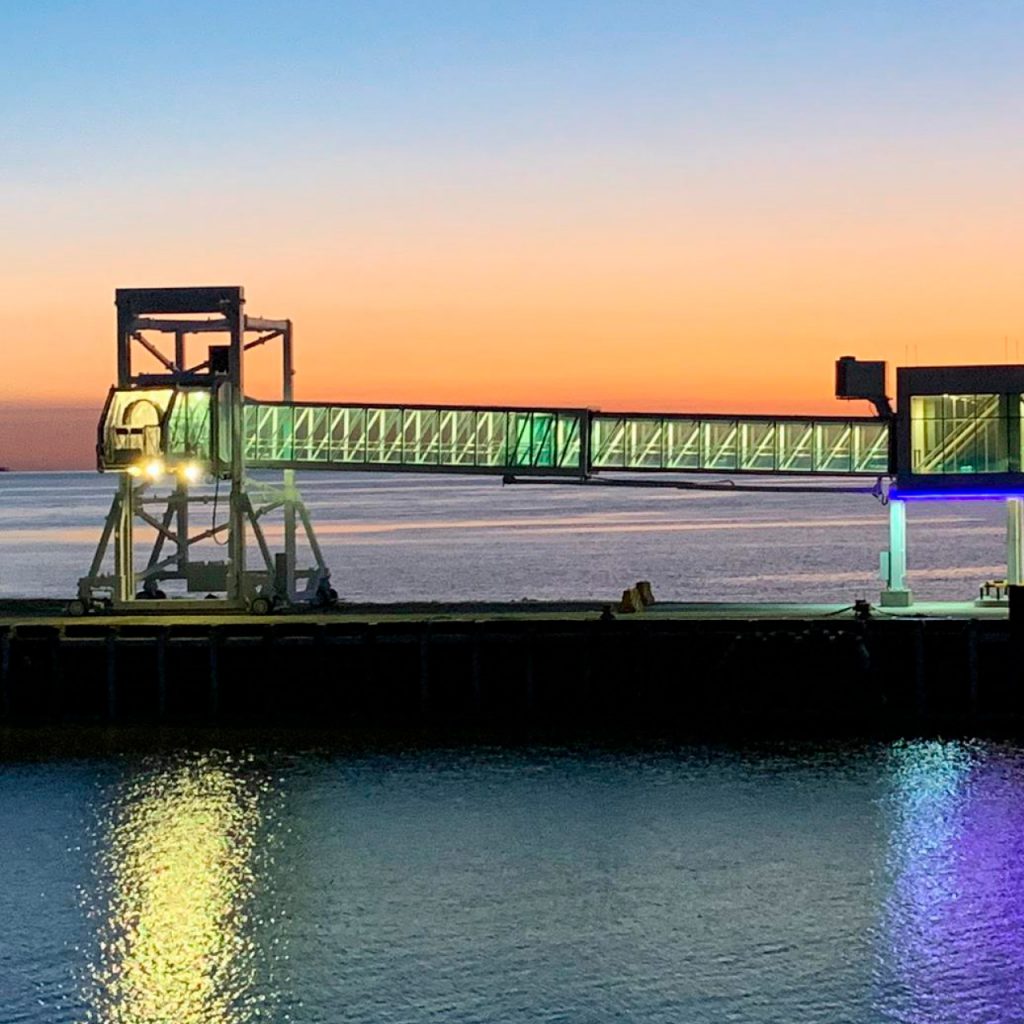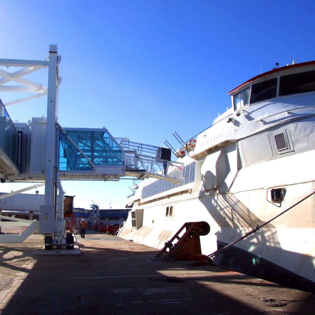 Pasarelas fijas y mangas móviles en el puerto de Colonia.